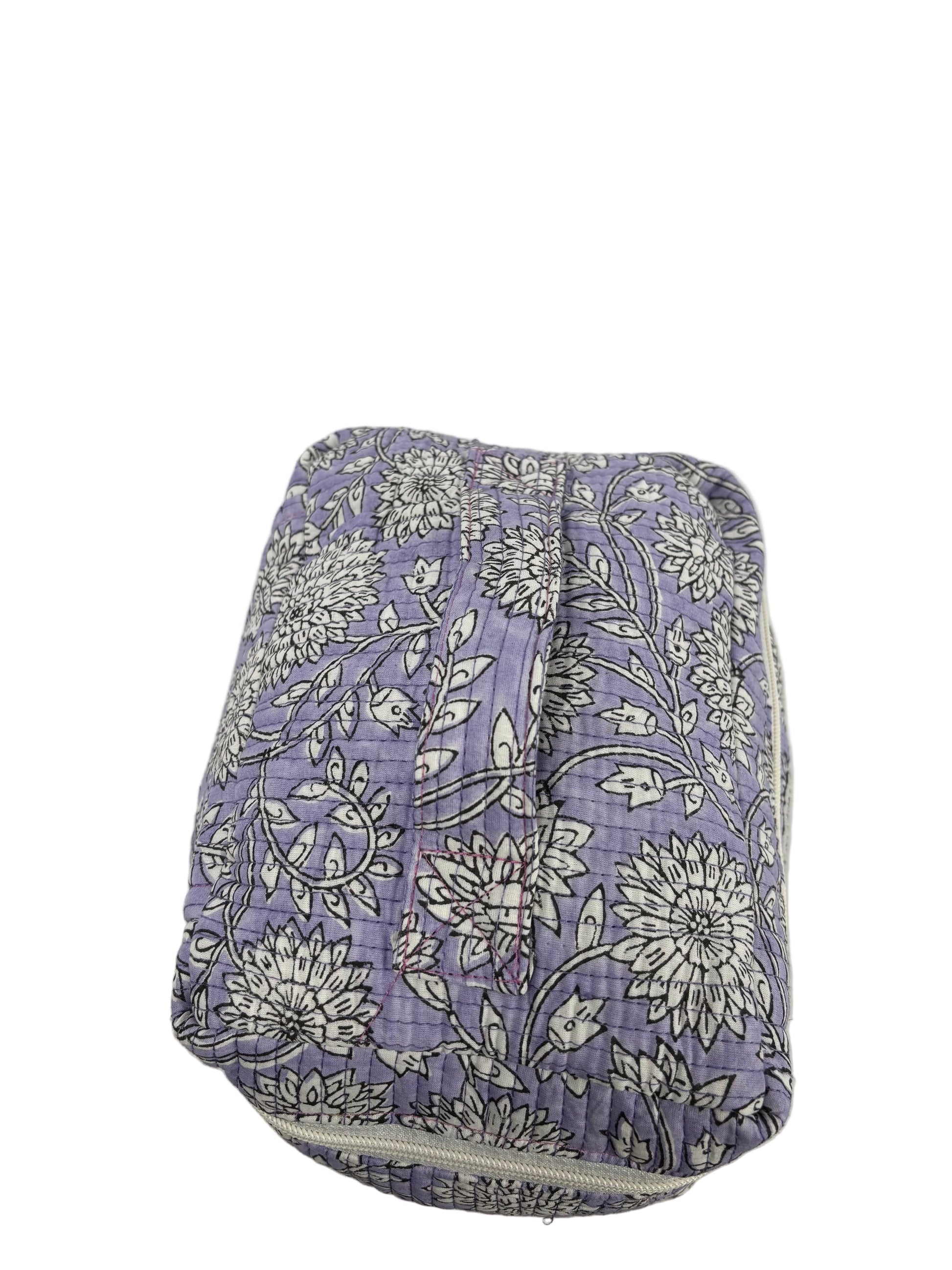 The Wisteria Bloom Vanity Bag is pretty, practical, and perfect for on-the-go. This softly quilted vanity bag keeps makeup and small essentials organized in a compact, easy-to-pack shape—great for cosmetics, hair ties, skincare minis, chargers, or as a tidy catch-all in your tote or weekender